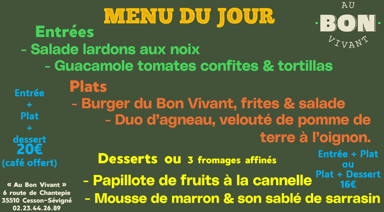 Nous sommes ravis de vous accueillir dans notre établissement où la passion pour la gastronomie française rencontre l'art de bien vivre. Au Bon Vivant, vous trouverez un restaurant, une charcuterie-traiteur, une fromagerie, une cave à vins et un bar, tout en un seul lieu.